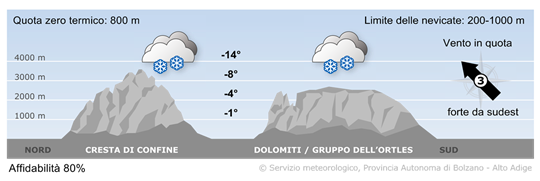 Sabato la nuvolosità tenderà ad aumentare con solo tratti soleggiati. In giornata inizierà a nevicare sulla cresta di confine.