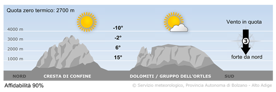 Sulle Alpi permarrà un intenso campo di alta pressione con correnti da nord in quota.